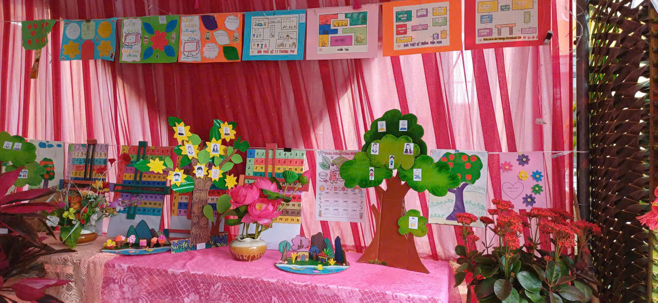 Điểm dừng chân đầu tiên chính là thế giới hồn nhiên của các em út Khối 1. Ai bảo vỏ lạc hay nắp chai là đồ bỏ đi? Hãy nhìn cách các bé biến chúng thành những bức tranh hoa lá và những chiếc đồng hồ sắc màu. Tại đây, chúng ta học được bài học đầu tiên của STEM: Sự sáng tạo bắt đầu từ những điều giản đơn nhất quanh ta.